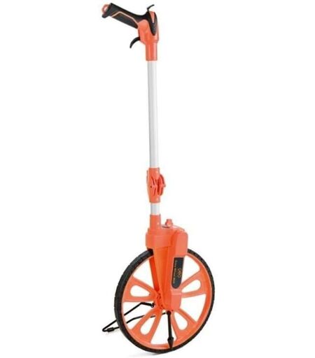 Odomètre Easywheel M20 GEOFENNEL 120 Poignée pistolet avec gomme antiglisse, pour plus de confort à l'utilisation Mise à zéro et frein d’arrêt intégrés dans la poignée Mesure minimale 10 cm Le mécanisme de dénombrement (compteur) fonctionne en avant et en arrière Détermination de la position du départ et du bout avec pointeur flexible Large béquille en métal stable et rétractable Très bonne traction Charnière de pliage robuste, équipée d'un bouton de blocage Capacité 9999,9m Précision : +/-,1% Bouton de stop et de remise à zéro sur la poignée Manche repliable Béquille en métal repliable Plage de mesure : 0 - 9 999.99 m Mesure : Compte en avant, décompte en arrière Dimensions / Replié :1000 x 140mm / 510 x 140mm Poids : 1.8 kg Périmètre de la roue : 1 mètre ...