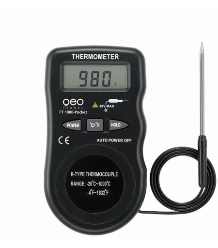 Thermomètre FT 1000-Pocket GEO FENNEL - 800420 - Domaines d’application : mesure de la température de liquides et de matériaux mous. Propriétés FT 1000-Pocket.Thermomètre digital haute température à sonde. ...
