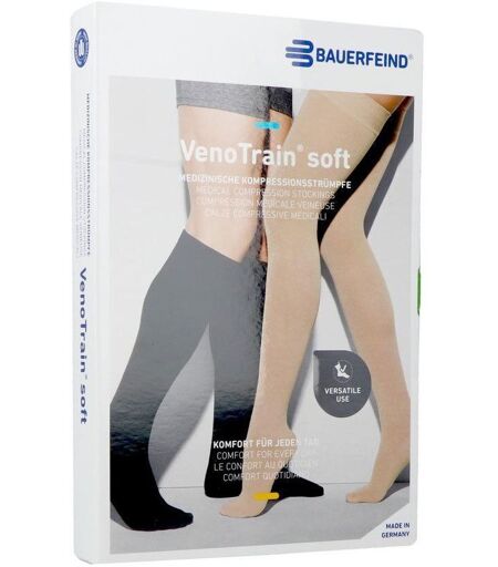 VenoTrain® soft offre des caractéristiques de port particulièrement agréables grâce à son tricot à mailles fines, respectueux de la peau. Le traitement spécial crée l'effet softVital : la peau est massée en douceur et la circulation sanguine est stimulée. Les veines sont comprimées et massées. Prévenir les varices Masse et stimule Dans le prêt-à-porter et le sur-mesure LE MASSEUR DE JAMBESAprès une opération ou en cas de faiblesse des veines, les bas de compression thérapeutiques aident à ramener le sang en direction du cœur, évitant ainsi la formation de varices. De plus, VenoTrain® soft masse les jambes. Son effet spécial procure une agréable sensation de port et stimule la circulation sanguine. DURABLE ET RESPECTUEUX DE LA PEAUVenoTrain® soft est disponible en 12 couleurs et de nombreux modèles différents. Les modèles nécessitent peu d'entretien et sont durables. Ils existent en tailles de série (avec le système Perfect-Fit) et sur mesure. PROPRIÉTÉS PARTICULIÈRES DE VENOTRAIN® SOFT Matériel de vitalisation Tricot doux pour la peau Polyvalent Pour elle et lui Idéal pour les soins post-opératoires Grande stabilité Longue durée de vie ...