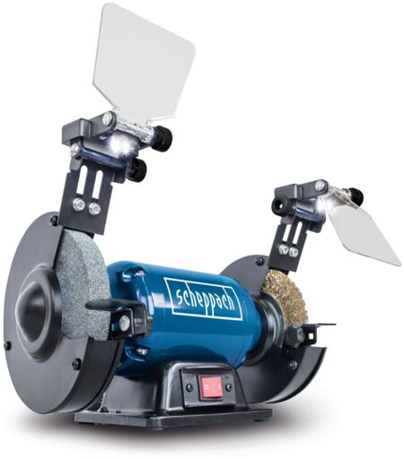 Scheppach - Touret Mixte SM150LB - Puissance 400W - Meule en grain 36 Ø150mm - Brosse métallique de Ø150mm - Pare-éclats ajustables - led - Pieds en