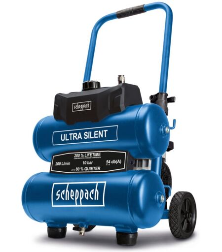 Scheppach - Compresseur d'air HC20Si Twin Ultra Silent – 230 v – 750 w – Pression max 10 bar – Cuve 20L – Double cylindre – Valeur acoustique 54 dB –