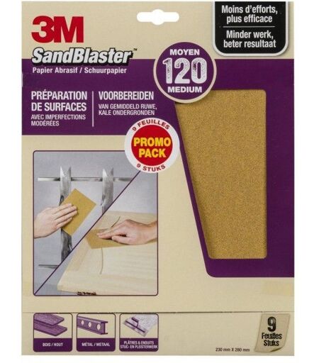 3M - 638760 - SandBlaster - Papier abrasif 230 mm x 280 mm - P120 - 9 Feuilles