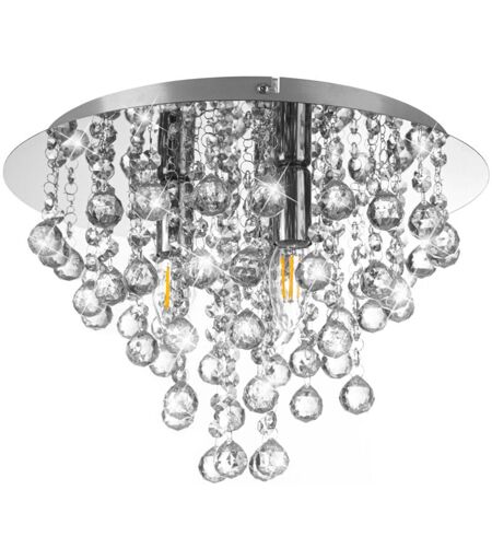 NINO LEUCHTEN Plafonnier lampe de salon lustre chambre lumière plafonnier cristaux, métal chrome argent, 3 ampoules E14, D 38 cm