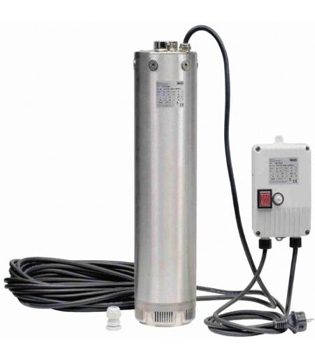 Pompe immergée multicellulaire a purge automatique et entierement submersible avec crépine d'aspiration standard pour installation immergée au-dessus du fond de cuve/citerne. Pour le pompage d'eau claire provenant de cuves, de citernes ou de puits jusqu'a une profondeur d'immersion de 17 m. Toutes les pieces en contact avec le fluide résistent a la corrosion. Pompe a courant monophasé avec câble de raccordement, coffret de commande (IP55) avec protection thermique du moteur, interrupteur MARCHE/ARRET et câble de raccordement de 2 m muni d'une fiche a contact de protection. Contenu de la livraison: - Pompe avec câble de raccordement de 20 m reliant la pompe au coffret de commande et câble de raccordement de 2 m muni d'une prise électrique partant du coffret de commande - Câble de sécurité en polypropylene (20 m, O 5 mm) - Notice de montage et de mise en service Caractéristiques hydrauliques: - Pression de service maximale PN: 10 bar - Teneur max. en sable: 50 g/m3 - Profondeur d'immersion max.: 17 m - Température du fluide min. Tmin: 5 °C - Température du fluide max. Tmax: 40 °C Caractéristiques du moteur: - Alimentation réseau: 1~230 V, 50 Hz - Puissance nominale du moteur P2: 1,1 kW - Vitesse nominale n: 2810 1/min - Courant nominal IN: 6,9 A - Courant de démarrage I: 28,98 A - Type de branchement: Direct en ligne (DOL) - Facteur de puissance cos ?: 0.95 - Nombre de démarrages max. t: 40 1/h - Classe de protection moteur: IP68 - Diametre moteur DM 127 mm Câble: - Longueur du câble de raccordement: 20 m - Section du câble: 4G1 mm2 Matériaux: - Corps de pompe: Acier inoxydable - Roue: Acier inoxydable - Arbre: Acier inoxydable - Corps du moteur: Acier inoxydable Dimensions de montage: - Bride côté refoulement DNd: Rp 11 Photo d'illustration> ...