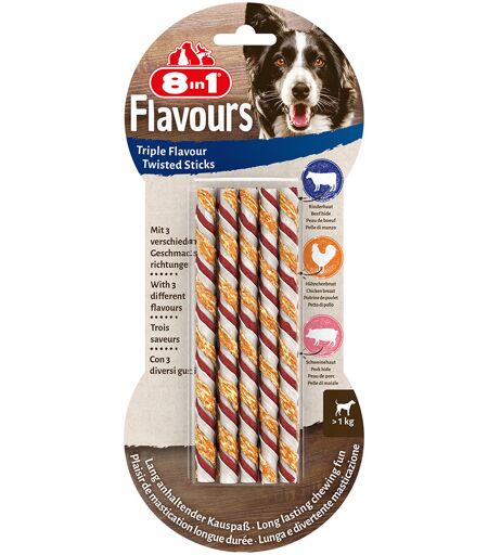 8in1 Triple Flavour Bâtonnets torsadés à mâcher pour chien - 10 bâtonnets à mâcher