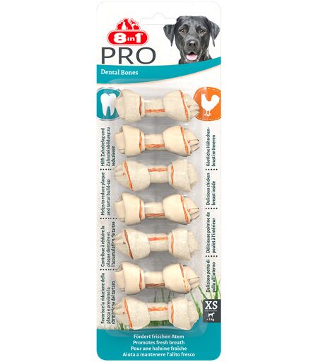 8in1 Pro Dental, poulet, os à mâcher pour chien - taille XS, 84 g (7 os)
