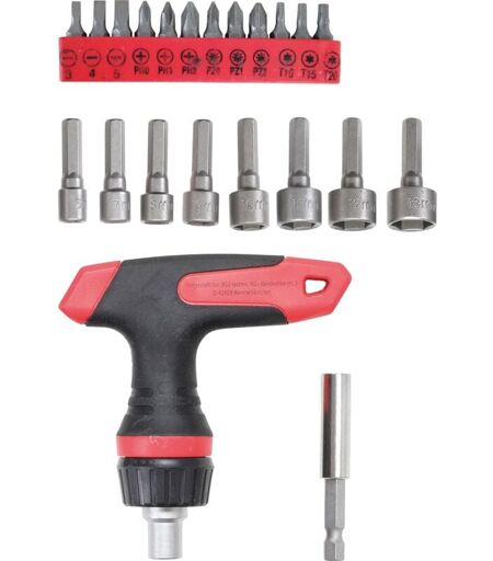 BGS TECHNIC Jeu d'embouts/de douilles avec poignée en t à cliquet pour embouts réversibles 22 pièces bgs diy 20122