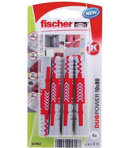 Fischer Blister de 4 chevilles tous matériaux DUOPOWER 10x80mm