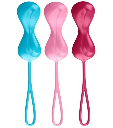 Découvrez la collection Satisfyer Balls de la célèbre marque Satisfyer ! Après s’être concentrée sur la stimulation du clitoris, la marque vous propose des sextoys dédiés et conçus exclusivement pour le plaisir des femmes et tout particulièrement pour vous procurer des orgasmes intenses, mais aussi pour vous remuscler et/ou entretenir le périnée. Le Kit Boules de Geisha Satisfyer Power Balls est idéal pour les personnes déjà initiées ( personnes ayant eu un enfant et ayant de besoin d'entretenir son périnée) pour permettre de pratiquer les exercices de Kegel afin de tonifier progressivement votre plancher pelvien. Reprenez le contrôle de votre corps et décupler votre plaisir ainsi que celui de votre partenaire ! Le but des exercices de Kegel est de restaurer le tonus musculaire et la puissance du muscle pubo-coccygien dans le but de prévenir ou de réduire les problèmes du plancher pelvien et d'augmenter le plaisir sexuel. Les exercices de Kegel sont réputés être bénéfiques pour le traitement du prolapsus vaginal et utérin des femmes. La forme double en huit de ces boules va resserrer, renforcer parfaitement votre périnée en toute douceur. Dotées de Billes internes elles vous apporteront également une intense stimulation avec un effet de vribration. Grâce à un cordon ergonomique vous pourrez retirer facilement votre boule de Geisha. Le Kit comprend 3 types de Boules de Geisha : * Des boules de 60g : elle est idéale pour commencer vos exercices de Kegel efficacement mais tout en douceur. * Des boules de 75,6g : lorsque vous serez à l’aise avec la boule de 60 g, vous pourrez passer à celle-ci afin de muscler plus intensément votre périnée. * Des boules de 91g : la plus lourde des trois boules de geisha, elle est idéale pour les femmes expérimentées ayant déjà pratiqué les exercices de Kegel. Vous pourrez découvrir les exercices recommandés à faire avec ce modèle à l’arrière de sa boite, pour un exercice encore plus adapté et efficace. Entre plaisir et efficacité, ces Boules de Geisha sont un véritable atout pour votre périnée. En effet, les boules sont conçues dans un silicone élite ultra doux et hypoallergénique qui n’agressera pas votre corps. A chacun de vos mouvements ces boules modifieront leur position et obligeront vos muscles du périnée à s’adapter à ces changements. Vous pourrez renforcer efficacement les muscles vaginaux afin de mieux contrôler votre corps et intensifier vos orgasmes. Les Boules de Geisha sont également préconisées après une grossesse par les gynécologues et les sages-femmes. Conseils d’utilisations : Commencez par les boules seule de 60 g, si vous débutez dans cette pratique, puis passer progressivement à votre rythme aux autres boules de geisha. Il est conseillé de les porter au moins 2 à 3 fois par semaine pendant 15 minutes pour commencer et ensuite augmenter la fréquence selon vos besoins. Enrobez généreusement la boule de geisha d’un lubrifiant à base d’eau avant de réaliser l’insertion. Les 3 boules ont toutes une... ...