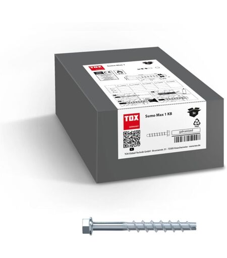 Les vis d'ancrage TOX Sumo Max 1 KB en acier galvanisé pour charges lourdes sont idéales pour fixer des garde-corps, des consoles métalliques et des systèmes d'étagères. Les vis à béton TOX Sumo Max 1 KB sont homologuées pour différentes épaisseurs de serrage et sont disponibles en différentes tailles. Trois profondeurs d'ancrage possibles Montage simple et rapide Classe de résistance au feu R120 Convient aux fixations temporaires, car démontables Entraxe et distance par rapport aux bords réduits Agréé par le contrôle de la construction pour le béton fissuré et non fissuré Possibilité d'ajustage lors de la fixation de poteaux de garde-corps Possibilité de mise en charge immédiate Calibré pour les tremblements de terre C1, C2 Convient à la pierre naturelle avec une structure dense Contenu de la livraison : 1x carton d'ancrage à visser Sumo Max 1 KB 8x100 mm, 50 pièces, 041101241 Les vis à béton TOX Sumo Max 1 KB sont livrées par catégorie dans des cartons TOX pratiques : vous avez ...