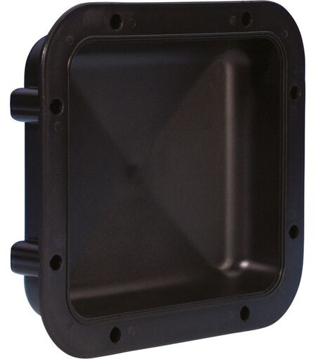 Cuvette Encastrable plastique noir: Cuvette encastrable pour le montage de poignées sur les caissons d'enceintesDonnées techniques: Type de produit: Poignées, Type: Poignées encastrables, Matériau: Plastique, Surface: brut, Couleur: noir, Hauteur poignée: 166 mm, Largeur poignée: 186 mm, Profondeur poignée: 39 mm, Hauteur de découpe: 130 mm, Largeur de découpe: 150 mm, Ø trous de fixation: 7 mm, Poids: 0,287 kg ...