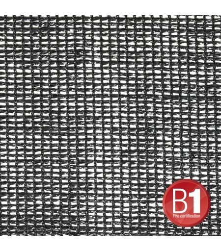 Gaze Type 202 4x6 m confectionnée avec œillets noire: La Gaze 202 est une toile à grosses mailles, perméable à l'air et laissant passer le son, en polyéthylène, d'opacité moyenne, utilisable en revêtement, en rideau et en masquage sur scène et en événementiel, en salon commercial et dans bien d'autres domaines. Ce matériau solide et résistant au déchirement est vendu au mètre, en 3 mètres de largeur, il est confectionné dans différentes dimensions avec des œillets et un ourlet, et livrable en blanc ou en noir. La Gaze 202 résiste aux acides, aux intempéries, à la chaleur et est hydrofuge. Pour la fixation, des clips et des attaches de câble sont disponibles en option. Ourlet sur tout le pourtour, et œillets (écartement 50 cm), Résistant aux UV et à la décoloration pendant 3 ans, Lavable, Opaque à une distance d'environ 25 mètres, Température d'utilisation: de -30 à +70°C, Autres finitions disponibles sur demande, Les mesures sont données avec une tolérance de +/- 5%, inévitables techniquement, et dépendant de la température et de l'hygrométrie., Pour utilisation en revêtement de scène de plein air, Données techniques: Type de produit: Gazes, Type: 202, ouverte, Couleur: noir, Largeur: 4 m, Longueur (m): 6 m, Poids: 140 g/m², Classe d'inflammabilité: B1, Coefficient de perméabilité à l'air: 37 %, Poids: 3,36 kg ...