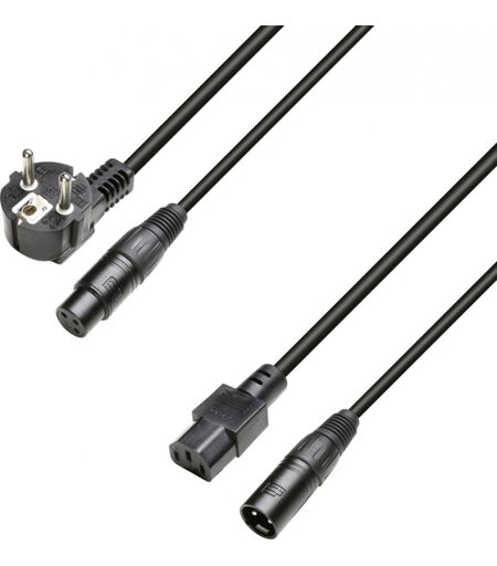 Plus d'enchevêtrement de câbles grâce à ce câble unique vers votre matériel, Pour une transmission parallèle de l'alimentation et d'un signal audio équilibré, Équipé de connecteurs audio AH extrêmement fiables, 3 sections de 1,5 mm² pour l'alimentation, 2 sections de 0,22 mm² pour l'audio, Données techniques: Type de produit: Câbles, Type: Câbles électrique et de signaux, Longueur du câble: 10 m, Longueur des fourches: 40 cm, Couleur: noir, Diamètre global: 16 mm, Matériau gaine: PVC, Connecteur 1-A: Contact de protection Type E+F (CEE 7/7), Sexe du Connecteur 1-A: mâle, Connecteur 1-B: C13, Sexe du Connecteur 1-B: femelle, Connecteur 2-A: XLR, Sexe du Connecteur 2-A: femelle, Nombre de points du Connecteur 2-A: 3, Connecteur 2-B: XLR, Résistance aux Interférences: 55 Ohms/km, Sexe du Connecteur 2-B: mâle, Nombre de points du Connecteur 2-B: 3, Section Conducteur 1: 1,5 mm², Nombre Conducteurs 1: 3, Section Conducteur 2: 0,22 mm², Matériau Conducteur 2: Cuivre nu, Structure Conducteur 2: 28 x 0,1 mm, Nombre Conducteurs 2: 2, Blindage: Blindage par spirale, Matériau blindage: Cuivre / Feuillard Aluminium, Fil/Fil: 125 pF/m, Température maximale de fonctionnement: -20 - 70° °C, Poids: 2,7 kg ...