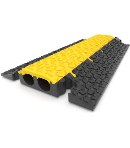 Passage de câbles à 2 canaux: Revêtement 3D LaserGrip® particulièrement antidérapant et stable, Design ergonomique pour une plus grande praticabilité et accessibilité., Charnière autonettoyante brevetée et système de verrouillage pratique, 2 canaux de 35 x 30 mm chacun pour câbles haute tension et tuyaux d'eau, Capacité de charge env. 2 t / 20 x 20 cm, Classe de résistance au feu B2 (DIN 4102), certification DEKRA (DIN 31000, EN 61537), Résistant au pétrole, aux acides, à l'essence et au contact de courte durée avec les solvants, Dimensions 1005 x 273 x 45 mm, poids env. 5,2 kg, Fabriqué en TPU extrêmement robuste et incassable, Possibilité de marquage individuel, Garantie de 5 ans, Le passage de câbles compact Defender® MICRO convient parfaitement à une utilisation à l'intérieur et à l'extérieur, par exemple pour des expositions, des salons, des centres commerciaux, des scènes ou des studios. Il présente deux passages de câbles de 35 x 30 mm pour câbles haute tension et tuyaux d'eau. Avec une capacité de charge de 2 tonnes par surface de 20 x 20 cm, les passages de câbles MICRO supportent de petits camions, des véhicules, chariots, bicyclettes, fauteuils roulants et piétons. L'excellente capacité antidérapante et la stabilité est assurée par le revêtement LaserGrip® grâce à sa structure spéciale et son design unique. Le TPU tout à fait incassable garantit la longévité des passages de câbles solides. Encore plus de sécurité grâce au revêtement 3D LaserGrip®La stabilité et la capacité antidérapante augmentent nettement grâce au design innovant du revêtement 3D LaserGrip®. Grâce à la forme particulière et à la nouvelle structure de surface, le risque de faire glisser une ligne complète de passages de câbles Defender® MICRO est considérablement réduit, même lorsque des véhicules lourds les franchissent. Personnalisez vos passages de câbles ! À partir d'une commande de seulement 30 pièces du même modèle, vous avez la possibilité de personnaliser vos passages de câbles Defender avec le logo de votre société. Le modèle de format correspondant est disponible ci-dessus dans l'onglet Téléchargements. N'hésitez pas à nous contacter. Données techniques: Type de produit: Passages de câbles, Type: 2 canaux, Largeur: 273 mm, Hauteur (mm): 45 mm, Longueur (mm): 1005 mm, Canaux: 2, Largeur canal 1: 35 mm, Hauteur canal 1: 30 mm, Largeur canal 2: 35 mm, Hauteur canal 2: 30 mm, Matériau: Polyuréthane, Charge max.: env. 2 tonnes pour une surface de 20 x 20 cm, Résistance aux produits chimiques: Contact à court terme avec les solvants, Résistance aux produits chimiques: Résiste à l'acide, Résistance aux produits chimiques: Résiste à l'essence, Résistance aux produits chimiques: Résiste à l'huile, Dureté: 88 Shore ± 4 Shore, Classe d'inflammabilité: B2, Température d'utilisation: -30°C à 60°C °C, Poids: 5,1 kg, Particularité: Certifié DEKRA ...