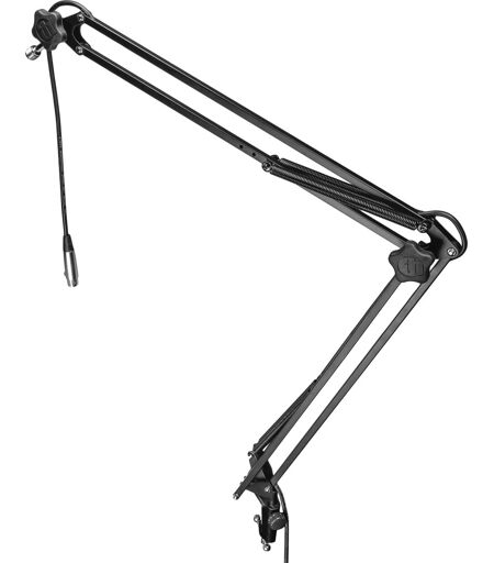 Tige de micro à fixer sur une table avec câble XLR intégré: Idéal pour les studios d'enregistrement et les applications multimédias, Réglage simple grâce aux supports à ressort, Câble micro intégré, Fixation sur une table avec la pince fournie ou sur socle, Que ce soit pour enregistrer un podcast, créer des contenus Internet ou réaliser des productions en home studio tout en en évitant les enchevêtrements de câbles, la tige de micro Adam Hall Stands S TBA 01 est le bon choix. Cette tige de micro légère et robuste se fixe facilement sur tout plateau de table à l'aide de la pince fournie. Un câble micro XLR de 3 mètres de long est intégré dans la tige, ce qui permet d'éviter les enchevêtrements de câbles. La tige de micro Adam Hall Stands S TBA 01 est la solution idéale pour les home studios ou les postes de travail multimédias. Données techniques: Type de produit: Stands et pieds, Type: Pieds de micro, Bras matériel: Acier, Couleur Bras: Noir, Bras surface: Revêtement en poudre, Hauteur maxi: 1000 mm, Type de Socle: Fixation de table, Longueur du câble: 3 m, Poids: 1,254 kg ...