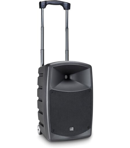 Enceinte active Bluetooth sur accus avec mixeur: Une enceinte-solution complète, alimentée sur accus, Lecteur Bluetooth, lecteur compatible clés USB et cartes SD, Amplificateur d'une puissance de 480 W crête, travaillant en Classe D, 2 entrées sur connecteur Combo (mixte XLR/jack), commutables micro/ligne, Entrée Aux sur mini-jack 3,5 mm, Section Master avec égaliseur grave/aigu intégré, Roulettes, poignée télescopique et puits pour pied d'enceinte 35 mm intégrés, Le LD Systems Roadbuddy 10 Basic constitue une solution idéale pour la sonorisation de discours et de diffusion musicale. Cette enceinte 2 voies est équipée d'un boomer de 10" (25 cm) et d'un tweeter à chambre de compression de 1", elle possède des accumulateurs rechargeables assurant une durée d'utilisation allant jusqu'à 8 heures, et intègre un amplificateur travaillant en Classe D doté d'une alimentation à découpage de haute efficacité, pour une puissance crête de 480 watts. Le Roadbuddy permet même de travailler sans fil . Le lecteur Bluetooth intégré est facile à utiliser, grâce à un écran LCD rétro-éclairé et un égaliseur, il accepte aussi les clés USB et cartes SD (formats de fichiers audio reconnus: .mp3, .WMA et .WAV). En ce qui concerne les sources audio filaires, le Roadbuddy propose deux entrées mono équipées de connecteurs Combo avec réglage de niveau séparé, commutables micro/ligne, une entrée stéréo sur RCA (cinch) (avec sommation mono) et une entrée Aux sur mini-jack 3,5 mm. Le panneau utilisateur rassemble aussi les potentiomètres de graves, d'aigus, de niveau d'écho et de réglage de volume général. Grâce à ses roulettes intégrées et à sa poignée télescopique, le LD Systems Roadbuddy est facilement transportable. Sur le dessus se trouve un compartiment très pratique, accueillant jusqu'à deux micros HF. Le coffret plastique de l'enceinte assure une grande légèreté, et il est percé d'un puits pour pied de 35 mm de diamètre. Données techniques: Type de produit: Haut-parleurs sur piles, Diamètre boomer/médium: 10 ", Diamètre Boomer: 254 mm, Aimant boomer: Ferrite, Marque boomer: Sur mesure, Diamètre tweeter: 1 ", Diamètre Tweeter: 25,4 mm, Aimant tweeter: Ferrite, Marque tweeter: Sur mesure, Amplificateur: Classe D, Puissance (efficace): 120 W, Puissance (crête): 480 W, Réponse en fréquence: 55 - 18000 Hz, Niveau de pression sonore (pour 1 W à 1 m): 96 dB, Niveau de pression sonore maximal: 115 dB, Circuits de protection: Court-circuit, Circuits de protection: surcharge, Circuits de protection: Surtension, Réglages: CD / Tape IN Level, Réglages: Echo, Réglages: Graves, Réglages: High, Réglages: Mic 1 Level, Réglages: Mic 2 Level, Réglages: sélecteur AUX / MP3, Réglages: Volume général, Indicateurs: Indicateur de charge / batterie, Indicateurs: Power, Lecteur de médias Médias reconnus: Bluetooth, Médias reconnus: Carte SD, Médias reconnus: Clé USB, Formats reconnus: CD avec fichiers WAV, Formats reconnus: Fichiers MP3, Formats reconnus: Fichiers WMA, Contrôles lecteur... ...