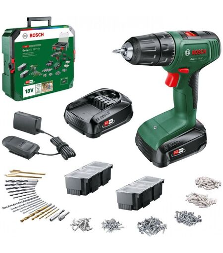 Perceuse visseuse Bosch EasyDrill 18V 40 + 2 batteries 18V 1,5Ah + Systembox avec 241 Accessoires + chargeur AL1810CV - 06039D8007