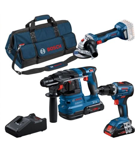 Bosch - Kit Combo 3 pièces 18V : gsr 18V-55 + gws 18V-7 + gbh 18V-22 + 2x pc 4,0 + chargeur + étui