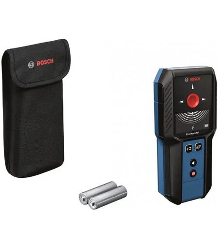 GMS 120-27 Professional - Détecteur Permet de percer en toute sécurité en détectant les métaux, câbles sous tension et ossatures en bois logés dans les murs ou cloisons Facile a utiliser grâce a la sélection facile du mode de détection et au trou de marquage Conçu pour les environnements de chantier rudes grâce au boîtier caoutchouté absorbant les chocs et a l’indice de protection IP54 Inclus dans toutes les variantes Poche En plus pour cette variante 2 piles 1,5 V LR6 (AA) Caractéristiques techniques Données les plus importantes Technologie radar Bosch Non Objets détectables Métaux magnétiques (p. ex. fer), Métaux amagnétiques (p. ex. cuivre), Câbles électriques sous tension, Ossatures en bois Profondeur de détection maxi. 120 mm Profondeur de détection maxi, métal magnétique 100 mm Profondeur de détection maxi, métal non-magnétique 120 mm Profondeur de détection maxi, câbles sous tension 50 mm Profondeur de détection maxi, structures en bois 30 mm Étanchéité a l'eau et a la poussiere IP 54 Identification matériau Métal magnétique, Métal non-magnétique, Câble sous tension, Matériau non métallique Alimentation 2 piles 1,5 V LR6 (AA), 2 piles 1,2 V HR6 (AA), 1 batterie Lithium-Ion BA 3.7V 1.0Ah Poids env.* 0,29 kg Fonction supplémentaire Trou de marquage * Vous en saurez plus sur les écarts en cliquant sur le lien suivant : Spécifications techniques de produits GMS 120-27 Professional: Informations complémentaires Points forts du produit Quand vous percez dans un mur, vous voulez etre sur de ne pas rencontrer d’obstacles. Le scanner mural GMS 120-27 Professional permet de détecter des objets facilement et de maniere intuitive. Les résultats de détection sont indiqués par un signal sur l’écran et par la bague tricolore entourant le trou de marquage. Ce détecteur facile a utiliser permet de sélectionner facilement le mode de détection et de marquer l’endroit précis ou des objets ont été détectés grâce au trou de marquage. Protégé contre la poussiere et les projections d’eau (indice IP54) et doté d’un boîtier caoutchouté absorbant les chocs, le robuste détecteur GMS 120-27 a été conçu pour les environnements de chantiers les plus rudes. Équipement et application Le scanner mural GMS 120-27 Professional détecte et localise les objets en métal, les fils électriques sous tension et les ossatures en bois dans les cloisons seches. Le fait d’utiliser un détecteur avant de percer pour vérifier s’il n’y a pas d’objets enfouis dans les murs accroît la sécurité, tout particulierement lors de travaux de rénovation lorsqu’il s’agit de fixer des placards, des plans de travail de cuisine, des lavabos, des chauffe-eau et des systemes de chauffage ou bien d’installer des climatiseurs ou extincteurs automatiques a eau. Informations complémentaires Ce scanner ne fait pas que localiser le centre de l’objet détecté, il indique aussi la nature et la constitution de l’objet : métal magnétique ou non magnétique, câble électrique sous tension.> ...