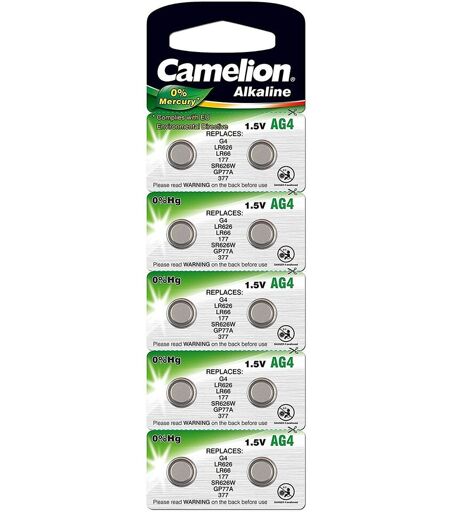Camelion 12051004 Pile bouton alcaline (AG 4/LR66/LR626/377, 1,5 V, 10 sous blister)