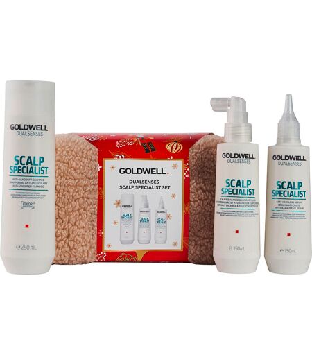 LES GRANDS CHEVEUX ONT BESOIN DE GRANDS SOINS. L'hiver est la saison où l'on prend soin de soi. Rends ta routine beauté inoubliable avec notre set Scalp Specialist XMas : la première condition pour de beaux cheveux est un cuir chevelu sain. C'est pourquoi Dualsenses Scalp Specialist propose une gamme de produits adaptés aux besoins individuels du cuir chevelu. Pour des résultats immédiats de la racine à la pointe. Ce kit contient : 1x Scalp Specialist Shampooing antipelliculaire, 250 ml1x Scalp Specialist sérum anti-chute de cheveux, 150 ml1x Scalp Specialist fluide d'équilibre et d'hydratation du cuir chevelu, 150 ml SHAMPOOING ANTI-PELLE SCALP SPECIALIST : Ce shampooing est spécialement conçu pour les pellicules et les cuirs chevelus à problèmes et procure une sensation de fraîcheur et de revitalisation. Sa formule légère est idéale pour les cheveux qui s'affinent ou les cuirs chevelus sensibles et libère le cuir chevelu de la saleté quotidienne et de l'excès de graisse grâce à des agents nettoyants en profondeur. SCALP SPECIALIST SERUM ANTI-CHEVEUX : un traitement concentré spécialement conçu pour renforcer, stimuler et rajeunir. Utilisée régulièrement, cette formule unique prévient et réduit la chute de cheveux héréditaire et favorise le rétablissement de l'équilibre du cuir chevelu. La technologie T-Flavanone favorise l'ancrage du cheveu directement à la racine et lutte ainsi contre la chute des cheveux. Les cheveux sont plus épais et plus volumineux au toucher, tandis que le cuir chevelu retrouve un environnement idéal qui favorise une repousse plus saine. Convient aux cuirs chevelus sensibles. SCALP SPECIALIST BALANCE DU PELAGE CAPITAL ET FLUIDE HYDRATANT : rééquilibre immédiatement le cuir chevelu, l'hydrate et le protège du dessèchement. Avec protection de la couleur. Convient à une utilisation quotidienne. Pour tous les types de cuir chevelu. Application : Shampooing - Appliquer sur les cheveux mouillés. Faire mousser et rincer abondamment. Sérum anti-chute - Appliquer une quantité généreuse sur le cuir chevelu matin et soir et masser doucement pour faire pénétrer. Ne pas rincer. Fluide équilibrant et hydratant pour le cuir chevelu - Vaporiser sur le cuir chevelu et masser doucement. Ne pas rincer. ...