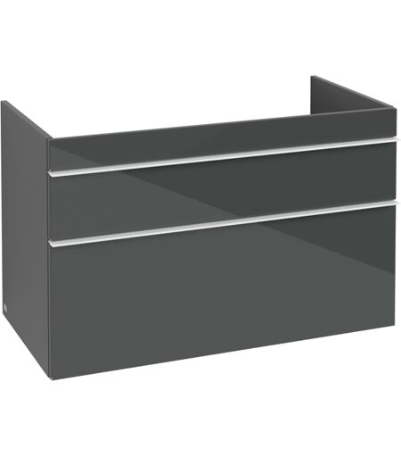 Villeroy und Boch Venticello Villeroy et Boch vasque A92602RA 95,3 x 59 x 50,2 cm, vasque au milieu, poignée blanche, verre Glossy Grey