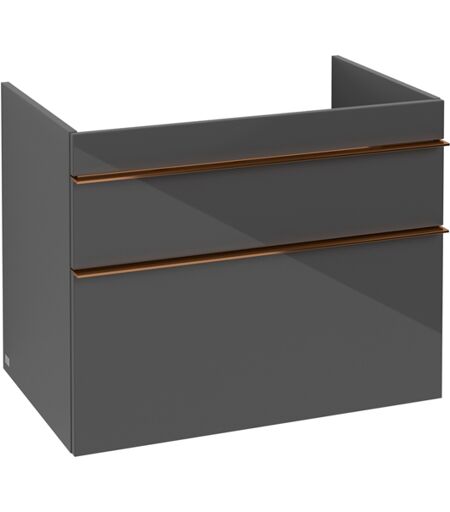 Villeroy und Boch Venticello Villeroy et Boch vasque A92505FP 75,3 x 59 x 50,2 cm, poignée cuivre, Glossy Grey
