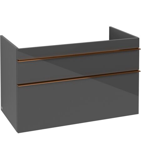 Villeroy und Boch Venticello Villeroy et Boch vasque A92605FP 95,3 x 59 x 50,2 cm, vasque au milieu, poignée cuivre, Glossy Grey