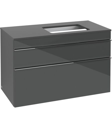 Villeroy und Boch Venticello Villeroy et Boch vasque A94301RA 95,7 x 60,6 x 50,2 cm, lavabo à droite, poignée chromée, verre Glossy Grey