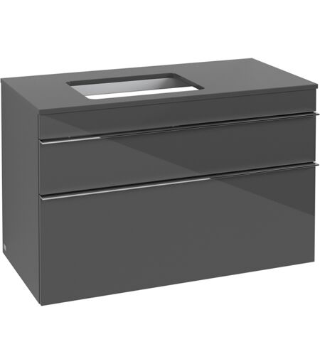 Villeroy und Boch Venticello Villeroy et Boch vasque A94201FP 95,7 x 60,6 x 50,2 cm, meuble à gauche, poignée chromée, Glossy Grey