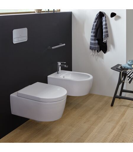 Villeroy und Boch Villeroy & Boch Avento Combi-Pack 5656HRR1 WC suspendu sans bride avec abattant, DirectFlush, blanc Ceramicplus