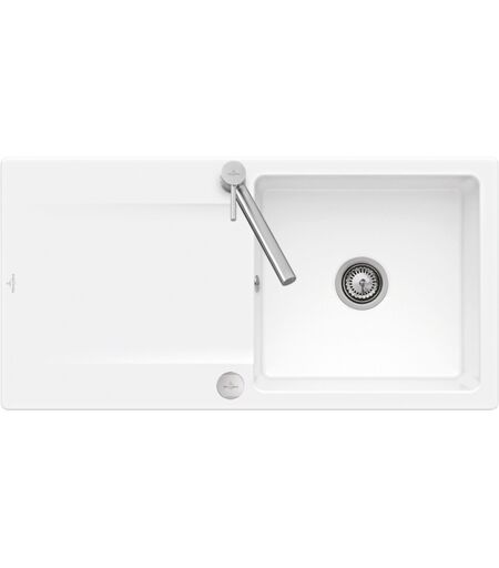 Villeroy und Boch Villeroy et Boch Siluet évier à chasse d'eau 33362FR1 avec garniture de vidage et actionnement excentrique, blanc