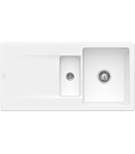 Villeroy und Boch Villeroy & Boch Siluet évier encastré 333701RW avec jeu de déchets et fonctionnement manuel, Stone White