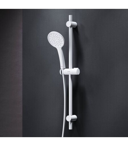 Design minimaliste Hi-Tech qui s'adapte à tous les intérieurs. Glissière exclusive AM.PM : il suffit de demi-tour pour fixer ! 1 mode de douchette : Enerjet ; Surface Soft Touch pour plus de confort. Barres de douche : 900 mm Flexible de douche : 1750 mm ; Fonction Rub&Clean; pour un nettoyage facile des buses de douche, douchette Ø 115 mm, Glissière réglable pour douchette. ...