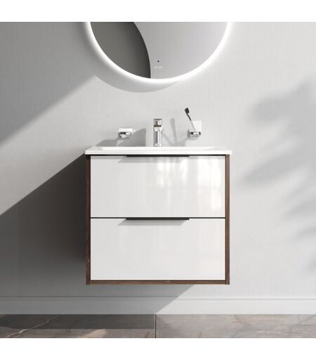 Am.pm - Meuble de Salle de Bain avec lavabo suspendu Meuble Sous Vasque Blanc Brilliant avec 2 tiroirs 60 cm