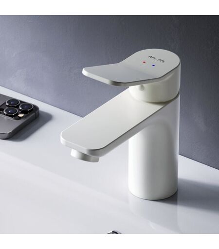 Am.pm - Mitiguer Lavabo Robinet Salle Bain Blanc Robinet de Lavabo pour Salle de Bain Mélangeur Lavabo en Laiton