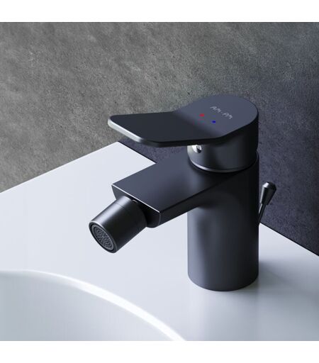Mitigeur monocommande pour bidet avec poignée plate et hauteur de bec de 10 cm. Destiné à l'eau chaude et froide. Montage facile à 1 trou sans plombier. Raccord flexible G 3/8 et instructions d'installation en anglais et en français inclus dans la livraison. Cartouche céramique SoftMotion développée par AM.PM, diamètre 35 mm. La cartouche céramique est particulièrement souple et assure un contrôle précis de la température et de la pression de l'eau. Aérateur Neoperl avec système de formation de jet à rotule permettant de changer l'angle de l'eau et utilisant une technologie d'économie d'eau sans éclaboussures en mélangeant le jet d'eau et l'air. Robinet de bidet de haute qualité en laiton avec une surface noire mate. La surface est facile à nettoyer et protège de la rouille. 5 ans de garantie pour le corps du mitigeur, 5 ans de garantie pour la cartouche céramique, deux fois plus longtemps que ce qui est supposé selon les normes du marché européen. ...