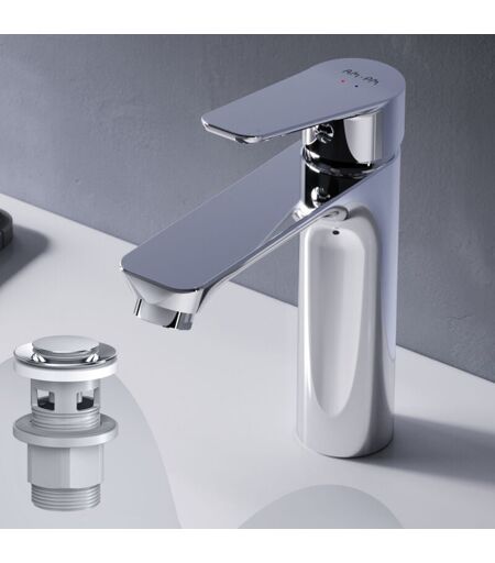 Am.pm - Mitiguer Lavabo avec bonde clic clac pour lavabo Robinet Salle Bain Chrome Robinet de Lavabo pour Salle de Bain Mélangeur Lavabo en Laiton