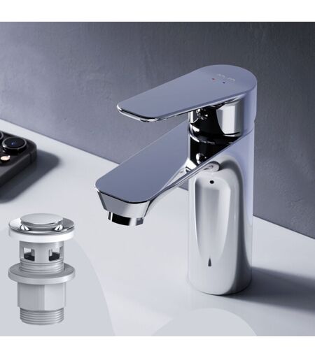 ARMATURE : Le mitigeur dispose d'un mélangeur à levier unique pour l'eau chaude et l'eau froide. Le robinet se monte en un clin d'œil sur le lavabo grâce à un montage à 1 trou. Robinet de salle de bains avec bec hauteur 100mm, robinetterie ø35mm DESIGN : le design moderne permet une utilisation facile & le robinet élégant pour lavabo assure un véritable accroche-regard dans chaque salle de bains ! CARTOUCHE & AÉRATEUR : La cartouche céramique SoftMotion de 30 mm permet un contrôle optimal de la température et résiste aux chutes de pression. Grâce à l'aérateur Neoperl, le jet d'eau est enrichi en air, ce qui évite les éclaboussures. LONGUE DURÉE : le robinet de lavabo est fabriqué en laiton chromé, qui se caractérise par sa facilité d'entretien, sa robustesse et sa longévité. Il bénéficie d'une garantie de 5 ans. LIVRAISON : 1x AM.PM FTA82100 Hit robinet de lavabo avec mitigeur, 1x vidage à clic, 1x instructions ( français, anglais), robinet de salle de bains en couleur chrome. La ...