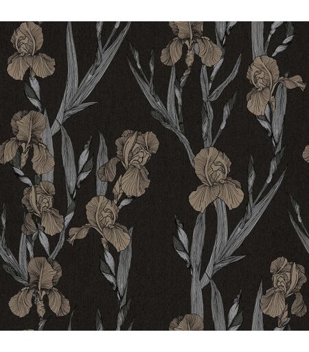 A.S. CREATIONS A.s.creations - Papier peint à motif fleuri pour salon Tapisserie florale couleur noire, grise et beige Papiers peints intissés tendances pour
