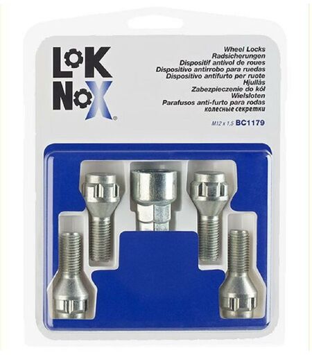 4 vis antivol 12x150 L2=26.4 - Coniques - Cle 17/19 - LOKNOX BC1179 Les écrous LOKNOX présentent le meilleur rapport qualité/prix. Traités anticorrosion. 12 références couvrant 85% du marché. Fabriqué par McGard, acteur majeur sur le marché OEM international et sur l'after-market - Filetage : 12x150 - Longueur sous la tête : 26.4mm - Portée : Coniques - Ouverture de clé : 17mm ou 19mm 1) N'oubliez jamais de comparer l'écrou antivol avec la fixation d'origine avant de commencer tout montage ! 2) Veuillez contrôler la longueur de la partie lisse / la longeur totale de la tige, le filetage, le siège ! 4) Attention! Veuillez prendre en considération que le dispositif anti-vol pour roues de McGard peut avoir une autre ouverture de clé que la fixation d'origine 5) Veuillez contrôler l'ouverture de clé ! ...