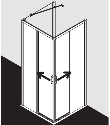 Kermi Liga entrée demi-diapositive. 2 pièces sans fond LIC2L120201PK entrée d'angle partiellement encadrée avec deux segments de porte coulissante ouverture d'un côté avec deux champs fixes Vitrage avec verre de sécurité trempé de 4 mm selon EN 12150 en option avec revêtement facile d'entretien Profils et poignées en aluminium anodisé Poignées métalliques avec brillant argent mat et surface KermiEXTRA Poignées Mécanisme de décrochage Connecteurs d'angle et connexions pour seuil en chrome Réglage du profilé mural 25 mm Les segments de porte coulissante pour Reinigung pivotés vers l'intérieur rouleaux de roulement à billes bandes magnétiques continues et profils d'étanchéité bande d'étanchéité horizontale avec effet de rebond de l'eau avec seuil (hauteur 6 mm) ou peut être installé sans seuil (sans plancher) En raison de la conception, aucune étanchéité absolue ne peut être obtenue chez LIGA avec matériel de fixation testé selon DIN EN 14428 (CE) et PPP 53005 (TÜV / GS) ...