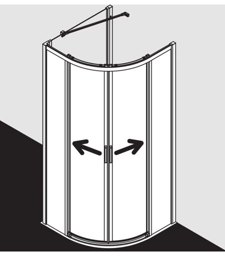 Kermi Liga porte coulissante quart de cercle, sans plancher avec 2 champs fixes LIC5509020VPK Cabine de douche quart de cercle partiellement encadrée avec deux segments de porte coulissante et deux champs fixes Vitrage avec verre de sécurité trempé 4 mm selon DIN EN 12150 en option avec revêtement facile d'entretien Profils en aluminium anodisé Poignées métalliques avec poignées argentées brillantes mates Mécanisme de décrochage et connexions pour seuil en chrome Réglage du profilé mural 25 mm Les segments de porte coulissante pour Reinigung pivotés vers l'intérieur rouleaux de roulement à billes bandes magnétiques continues et profils d'étanchéité bande d'étanchéité horizontale avec effet de rebond de l'eau Peut être installé avec seuil (hauteur 6 mm) ou sans seuil (sans plancher) Matériel de fixation testé selon DIN EN 14428 (CE) et PPP 53005 (TÜV / GS) ...