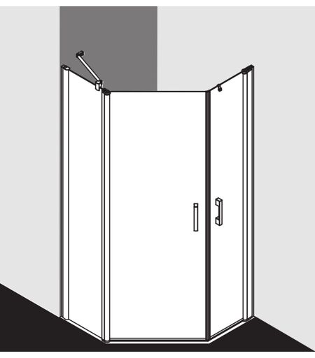 Kermi Pega cabine de douche pentagonale PE43R09020VPK 90x90x200cm, argent brillant, verre de sécurité trempé clair, droite