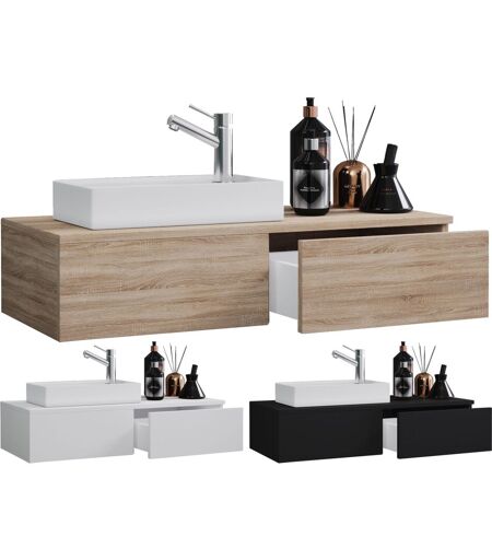 Set composé de : - 1x armoire basse avec un tiroir - 1x lavabo en céramique Le plan de toilette est un petit miracle d'espace. Le set se compose d'un lavabo avec meuble sous-lavabo. Une solution d'aménagement très élégante pour les WC ou les toilettes d'invités, afin d'apporter une touche visuelle. Meuble sous-lavabo : - Dimensions H. 19 x l. 85 x P. 35 cm - Corps en mélamine robuste et insensible - Un grand tiroir avec charnières métalliques Vasque : - Dimensions H. 11 x L. 41 x P. 23 cm - En céramique robuste Le meuble peut être complété par d'autres meubles de salle de bains "VCM Gudas" et par l'éclairage "VCM Blino". Depuis les années 70, VCM s'est spécialisé dans la construction, la production et la distribution de meubles avec un rapport qualité/prix équitable et a ainsi déjà embelli des millions de foyers. ...