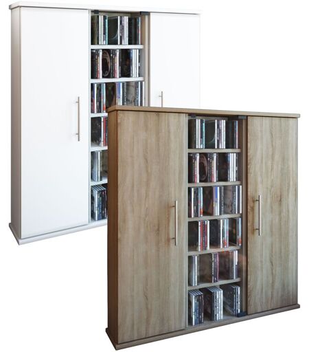Points forts : - Meuble en différentes variantes de couleurs - Deux portes en bois et une porte en verre de sécurité ESG - Pour 450 CD, 195 DVD ou 108 vidéos - 15 étagères variables - Paroi arrière stable - Imitation structure bois - Dimensions H. 92 x L. 86 x P. 18 cm Mettez de l'ordre dans votre collection de CD/DVD. C'est facile avec l'armoire à CD/DVD "Santo" de VCM. 15 étagères variables offrent de la place pour 450 CD, 195 DVD ou 108 vidéos. L'armoire a une porte en verre de sécurité ESG, le corps est fabriqué en imitation bois structuré. L'amour du détail fait d'un système d'archivage VCM quelque chose de très particulier. ...