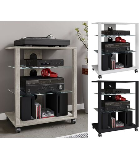Vcm Meubles Hifi Racks Armoire Phono Mobile Etagère En Verre À Roulettes Phono Mediaregal Folas