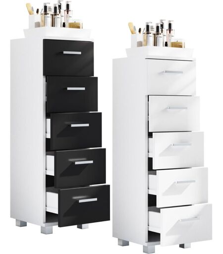 Points forts: - Dimensions env. H. 90 x L. 30 x P. 30 cm - 5 tiroirs Grâce à son design intemporel et sobre, l'armoire de salle de bain VCM "Zalo M" est un beau point de mire dans chaque pièce. La commode avec revêtement en mélamine est particulièrement facile d'entretien et insensible à l'humidité. L'armoire de salle de bain peut être combinée avec d'autres meubles de salle de bain de la série "VCM Zalo". VCM s'est spécialisé depuis les années 70 dans la conception, la production et la distribution de meubles au juste rapport qualité/prix et a ainsi déjà embelli des millions de foyers. ...
