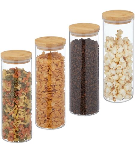Relaxdays - Lot de 4 bocaux en verre avec couvercle bambou, bocal conservation, 1600 ml, hermétique, transparent/naturel
