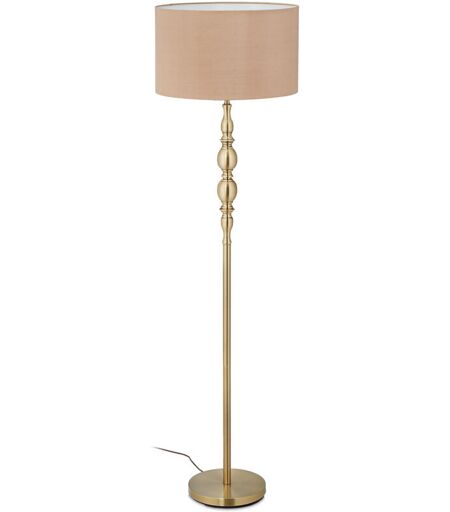 Relaxdays - Lampe droite, salon E27, avec câble, abat-jour tissu d 43 cm, lampadaire vintage 156 cm de haut, beige doré